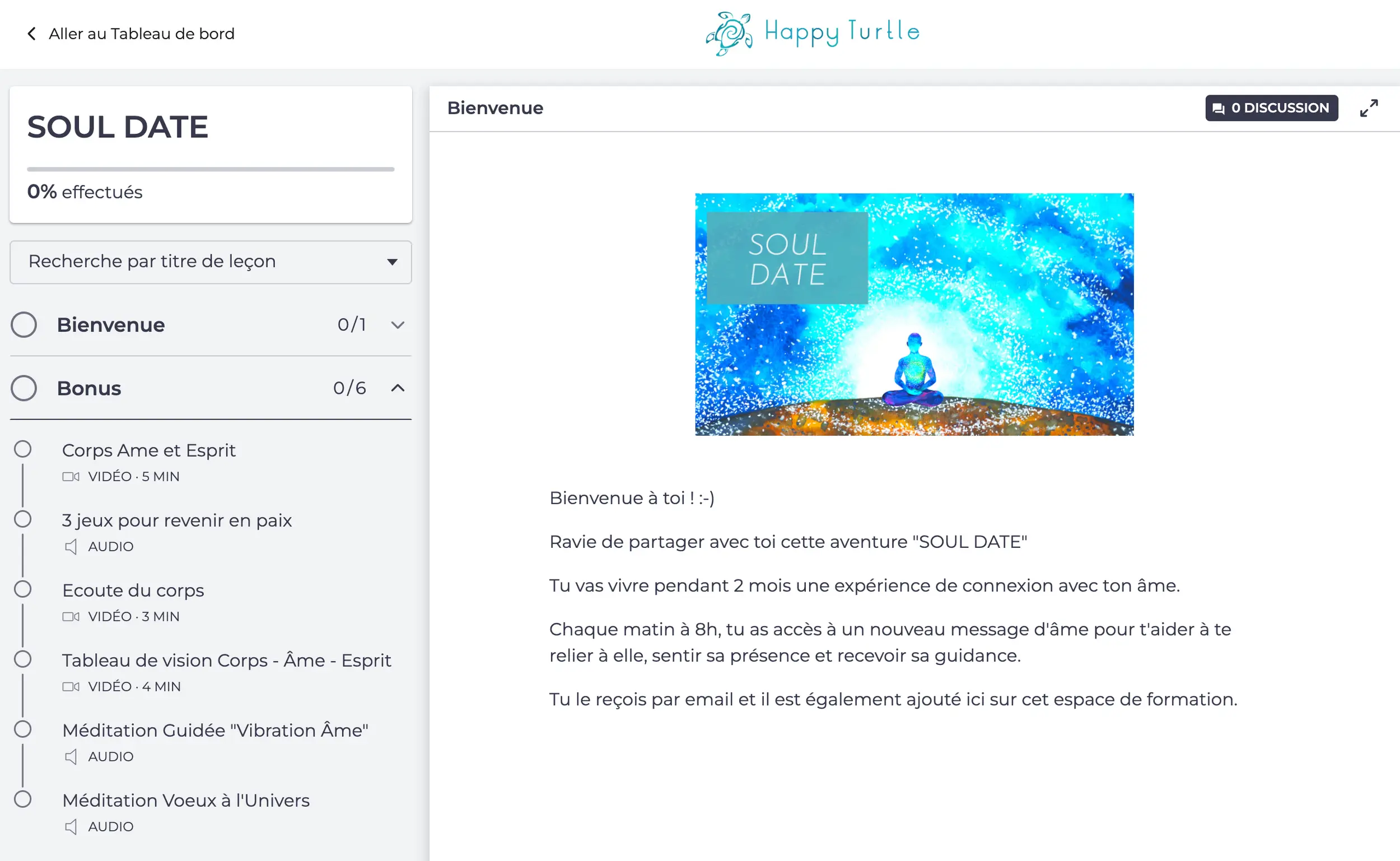Si tu ne veux pas t'embêter à aller le rechercher dans ta boite mail, sois rassuré.e tu as accès à vie à ces messages grâce à ton espace de formation "SOUL DATE".